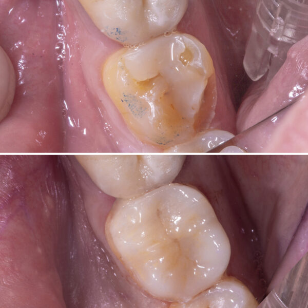 Препарирование зуба; цифровые слепки - сканирование 3Shape; цифровые моделирования; фрезерование В CAD/CAM лаборатории; изготовление Е-max вкладки; адгезивная фиксация накладки на зуб.