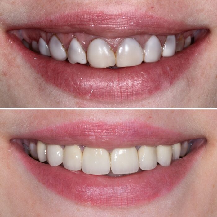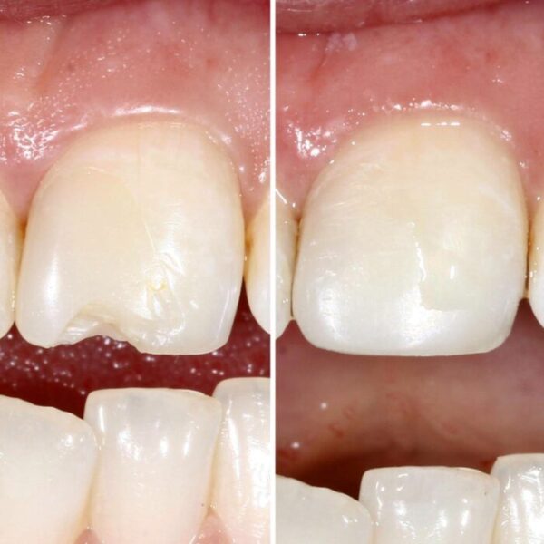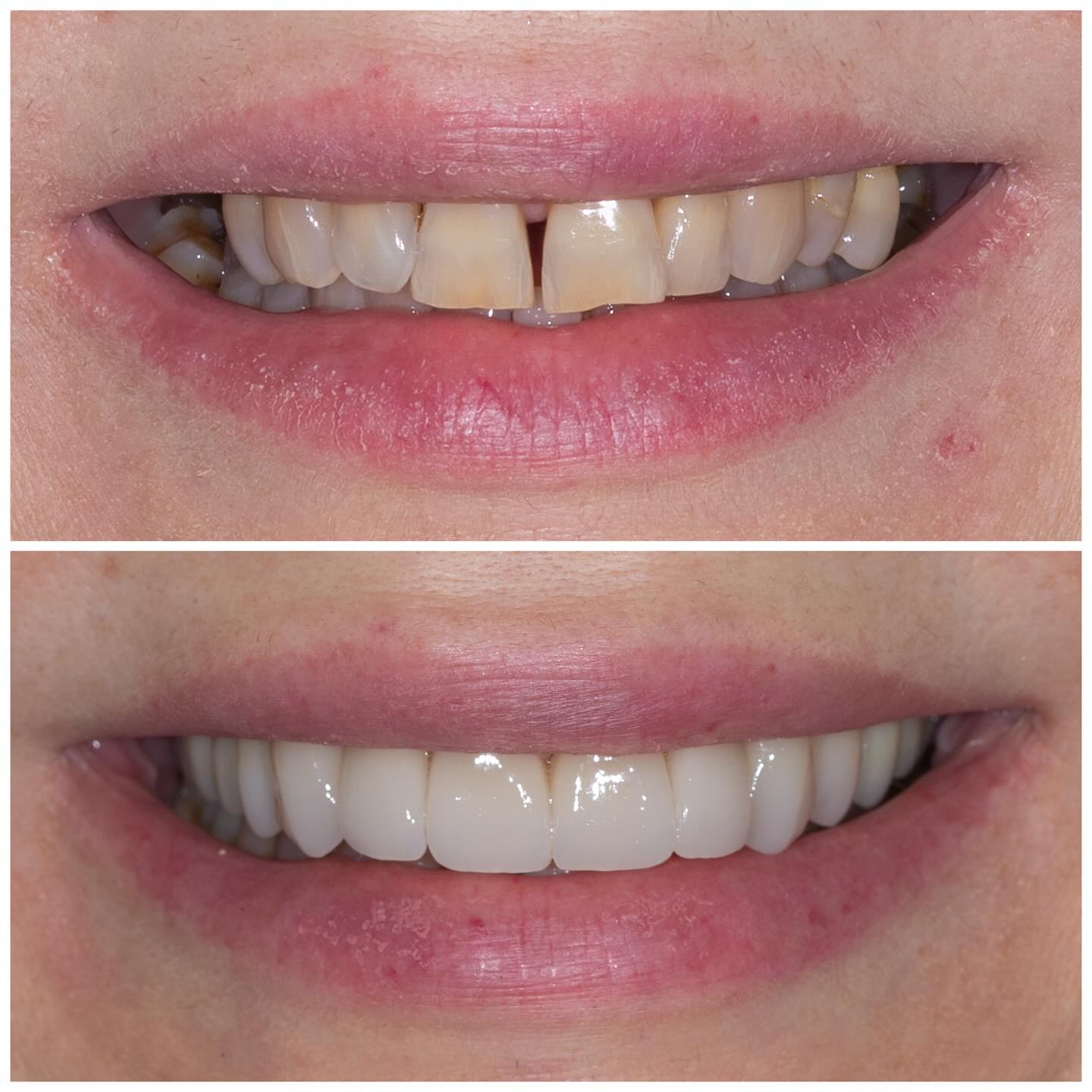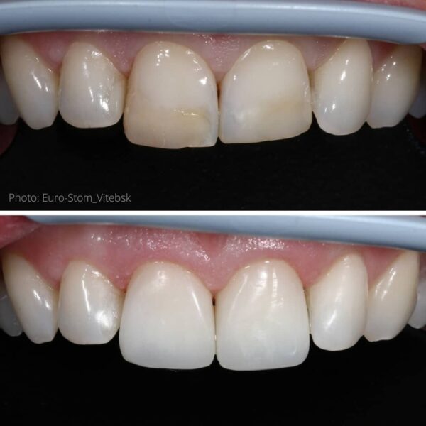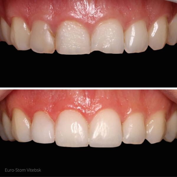 Исправление эстетических недостатков в области верхних резцов фотополимерными материалами.